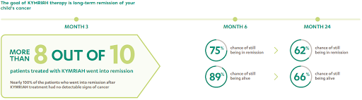 Dựa vào các kết quả lâm sàng trước đó thì tỉ lệ điều trị thành công của Kymriah ở trẻ em/thanh thiếu niên với B-cell ALL tái phát/kháng thuốc khoảng 80-90% trong 3 tháng đầu, khoảng hơn 60% sau 1 năm. Còn số liệu dựa trên 5 năm sau điều trị thì con số này khoảng ~55%.Hình 1. Tỉ lệ điều trị ung thư máu thành công của Kymriah. Nguồn hình ảnh: https://us.kymriah.com/sites/us_kymriah_com/files/documents/kymriah-pall-digital-patient-brochure.pdfTrong bài viết này RBT muốn đem đến cho các bạn thông tin về điều trị bằng công nghệ CAR-T cell như thế nào và ở trường hợp đầu tiên được điều trị thành công ung thu máu ở Việt Nam cụ thể ra sao.