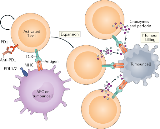 Tế bào T là một trong những loại tế bào thuộc hệ miễn dịch thích ứng, đóng vai trò quan trọng trong việc bảo vệ cơ thể chống lại các tác nhân xâm nhập từ bên ngoài như vi khuẩn, virus, cũng như các nguy cơ tiềm ẩn bên trong như tế bào đột biến bất thường có khả năng gây ung thư.Tế bào T tiêu diệt tế bào ung thư bằng cách sử dụng thụ thể (receptor) của nó để nhận biết các protein bất thường (đóng vai trò là kháng nguyên – antigen) được biểu hiện trên bề mặt tế bào ung thư. Những protein bất thường này được tạo ra từ các đột biến gen trong tế bào ung thư.Các tế bào trình diện kháng nguyên chuyên nghiệp (APC – Antigen-Presenting Cells) như đại thực bào (macrophage) và tế bào tua (dendritic cell) cũng có thể sử dụng các protein bất thường của tế bào ung thư để “huấn luyện” tế bào T nhận biết tế bào ung thư một cách đặc hiệu, đồng thời kích hoạt tế bào T tăng sinh mạnh hơn và hoạt động hiệu quả hơn trong việc tiêu diệt tế bào ung thư (Hình 2).Hình 2: Tế bào được chỉ dạy bởi các tế bào APC và tấn công tiêu diệt tế bào ung thư hiệu quả qua việc nhận biết các protein bất thường gắn trên màng tế bào. Nguồn hình ảnh: Nat Rev Immunol. 2020 Nov;20(11):651-668.Từ những năm 1980, các nhà khoa học đã bắt đầu thiết kế các thụ thể kháng nguyên lai tạo (Chimeric Antigen Receptor – CAR) trên tế bào T nhằm giúp chúng có khả năng nhận diện và tiêu diệt tế bào ung thư. Những tế bào T được cải biến này được gọi là CAR-T cells.CAR-T cells sử dụng thụ thể nhân tạo để nhận biết tế bào ung thư và tiêu diệt chúng, tương tự như cơ chế mà các tế bào T tự nhiên thực hiện để bảo vệ cơ thể khỏi các mối đe dọa.Trong lĩnh vực lâm sàng, liệu pháp CAR-T cell bắt đầu được thử nghiệm từ đầu những năm 2000, nhưng phải đến năm 2017 mới được Cục Quản lý Thực phẩm và Dược phẩm Hoa Kỳ (FDA) phê duyệt lần đầu tiên để điều trị một số loại ung thư máu như leukemia và lymphoma.Nhờ sự tiến bộ nhanh chóng của khoa học và công nghệ sinh học, việc nghiên cứu và phát triển CAR-T cell đã đạt được nhiều thành tựu đáng kể. Tính đến nay, FDA đã phê duyệt bảy liệu pháp CAR-T cell khác nhau trong điều trị các bệnh lý ác tính về huyết học.